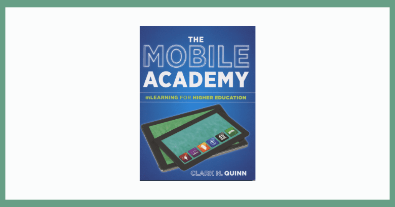Quinn,Clark N. (2011) The Mobile Academy:mLearning for Higher Education. San Francisco: Jossey-Bass. 120 pages. ISBN978-1-118-07265-3.
