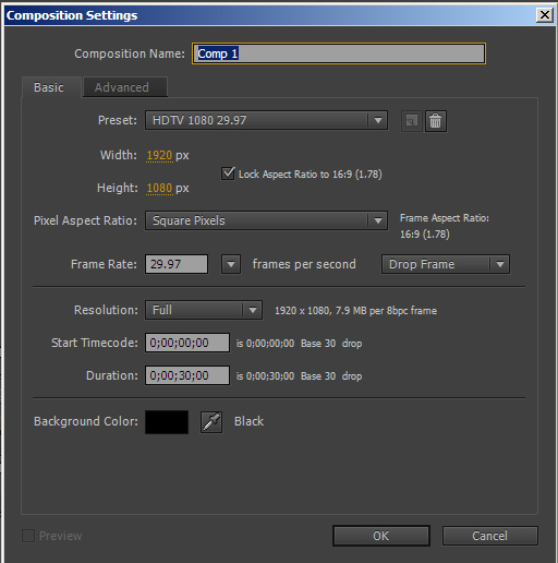 - Sometimes you’re making your own media; Forinstance, if you want to make a super with words or letters that move (see thetutorial here),you need to start your own composition. You can do this easily when you openthe program or by going to File >New>Composition and the Composition Settingspane will open (Figure 3). You can set the duration, size, etc. of thecomposition. Remember that a composition doesn’t have to adhere to anydimensions … you can make a wide and skinny composition for a super and simplywork with that size in your project.