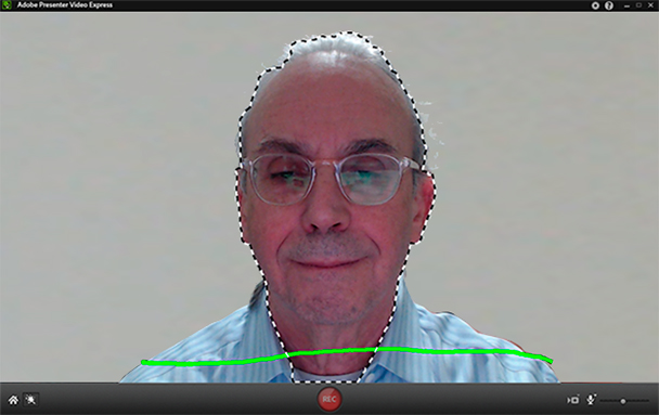 Figure 2: Presenter Video Express (PVX) with my head selected and thehorizontal line visible. This line captured my shoulders. I drew the line and letgo of the mouse to capture my whole torso.