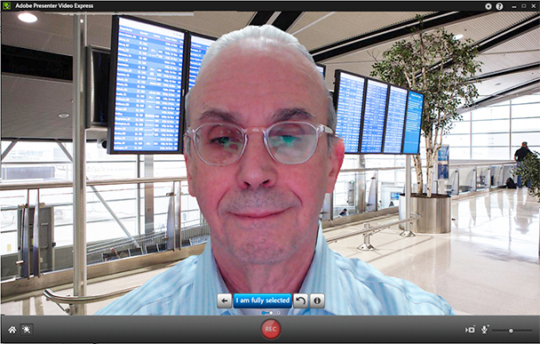 But I cannot ignore Adobe Presenter Video Express. This is oneprogram I’ve seen in the last several months that totally exceeded my expectations,and continues to do so. It’s a standalone version of the video part of AdobePresenter that allows you to capture directly into PowerPoint from your laptopvideo camera. But that was about all it did when it was part of Adobe Presenter.There was no way to change what was behind your head. Presenter Video Expressis an amazing new program on several levels, both in concept and in execution.