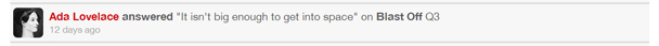 Context = “Blast Off” (the name of the exhibit) and“Q3” (Question #3 in the interaction)