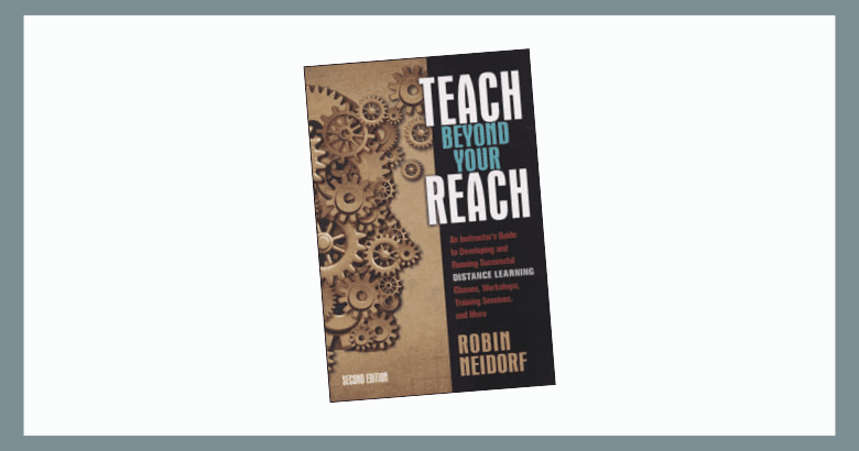 Neidorf, Robin (2012). TeachBeyond Your Reach: An Instructor’s Guide to Developing and Running SuccessfulDistance Learning Classes, Workshops, Training Sessions, and More (SecondEdition). Medford, New Jersey:Information Today, Inc. 214 pages. ISBN 978-1-937290-01-6.