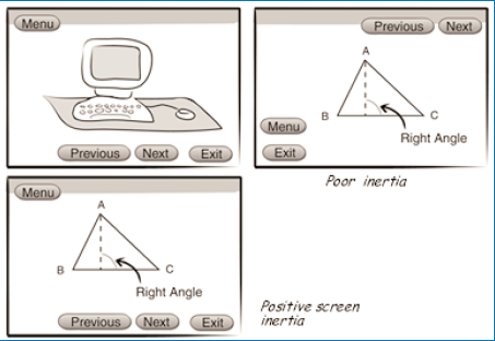 In fact, maintaining display inertia has proven a formidable challenge for many developers and interactive systems over the years. Authorware® (if you’ll forgive the reference to a previous endeavor of mine) was designed to make positive screen inertia very easy to maintain. Not all tools make this simple, but regardless of the effort some technologies require, common sense and good learner-interface design require you to keep the environment stable and persistent when it isn’t changing. And make sure that when things do change, the learner won’t fail to notice.