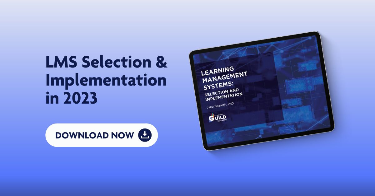 Download this new research report, Learning Management Systems: Selection & Implementation, where Jane Bozarth breaks down the survey findings to provide practical tips that can help you with your own LMS selection.