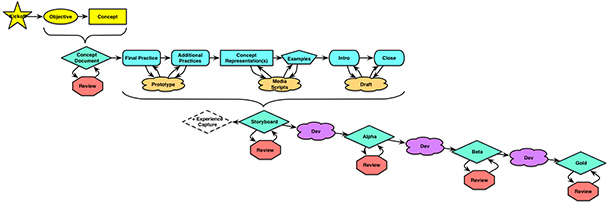 Withthis established, we had the content. Now it was time to flesh those out asdecisions with misconceptions. This was the beginning of the design component. So,from there, we started working to detail these out into modules. We startedwith the flow of information.