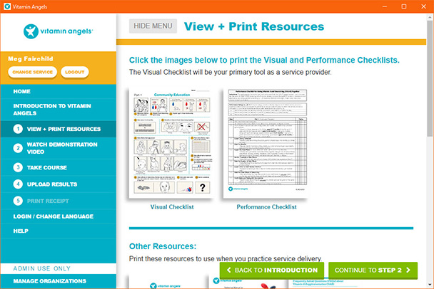 Training results will be field-tested and validated toverify that health care providers demonstrate an ability to perform procedures.In addition to observing the performance of trained providers, Vitamin Angelsis undertaking a formal evaluation to document whether health care providerstrained using the eLearning show the same—or improved—levels of competence asinstructor-trained providers.