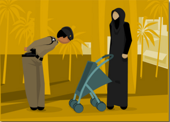 Later,the team changed the graphics again to reflect an appropriate representation ofaudience types. Even more so than in the United States, in Iraq it is importantto have both male and female police officers, because only men can search andinterview men, and only women can search and interview women. Clearly, thegraphics needed both male and female figures, and a later change included the additionof skirts and head scarves, or hijab, for some of the female figures. (SeeFigure 5.)