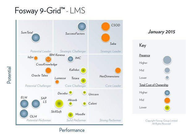 A key tool in David’smarket analyses is the Fosway 9-Grid model, an objective methodology for simplifyingresearch findings that focuses on how solutions perform in EMEA (See Figure 1).