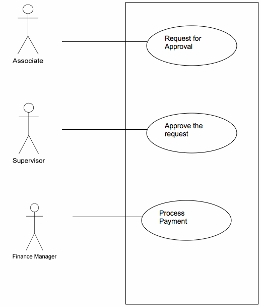 As is evident from Figure 1, it will be very easy for you to identify the learning objectives for each group of learners. You will be able to easily identify various groups of learners for your training. You will be able to clearly identify, from the expanded use case diagrams, the major tasks each group of the learners will have to perform on the system. Merely by going through the SRS, you can tell early in the project life cycle that one of the learning objectives for an associate is, “At the end of the course, you will be able to raise a request for approval.”