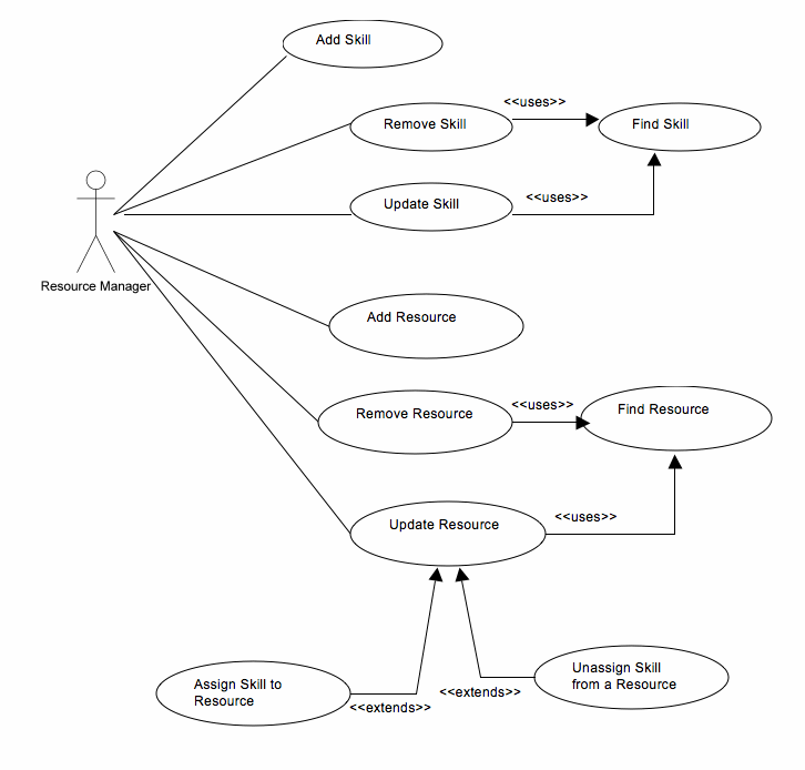 Figure 2 is the use case diagram for a resource manager using a resource management system. The resource manager has to maintain the skills database, and hence is expected to add, delete, and update skills. Similarly the resource manager also has to carry out maintenance activities of the resources, so he or she should be able to carry out the following tasks after undergoing the training program designed by the instructional designer: