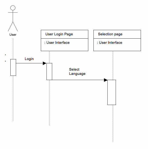 The sequence diagram illustrated in Figure 4 is not complete, but it will give you an idea of how the diagram will look. This diagram will enable you to identify the sequence of tasks that each group of users of the application will perform.