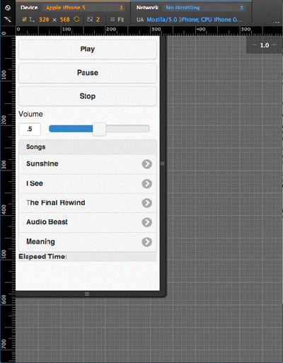 This month we’re going to create a complete mobile app. Insteadof creating a native app that works only on Android or iOS we’re going tocreate an HTML5-based app that works across multiple platforms. Since media isso critical in eLearning (and I thought it would be fun) I decided to create anMP3 player application. Figure 1 shows the user interface (UI). As you getready you might want to grab a couple of your favorite MP3’s as you’ll likelybe hearing them over and over again as you complete this tutorial.
