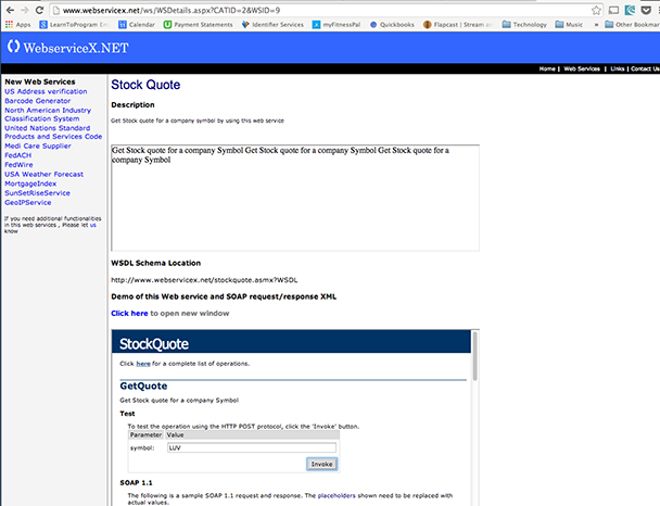 Figure 1: The description ofthe Stock Quote service from WebserviceX.NET