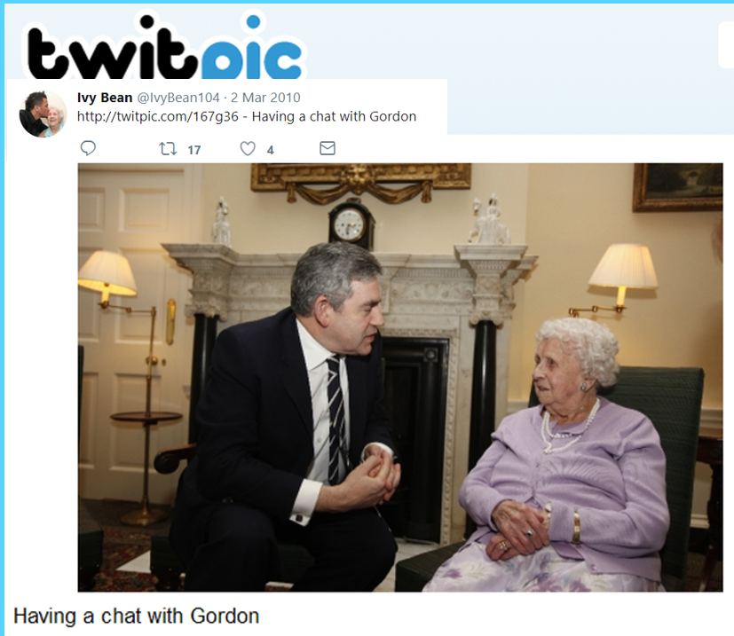 Figure 2: Ivy’s status as world’s oldest Twitterer earned her an invitation to meet then–Prime Minister Gordon Brown