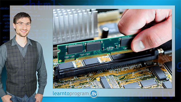 Figure 4: An example of a still slide that can be part of ascreencast. The voice-over is discussing computer memory, and it shows theinstructor.