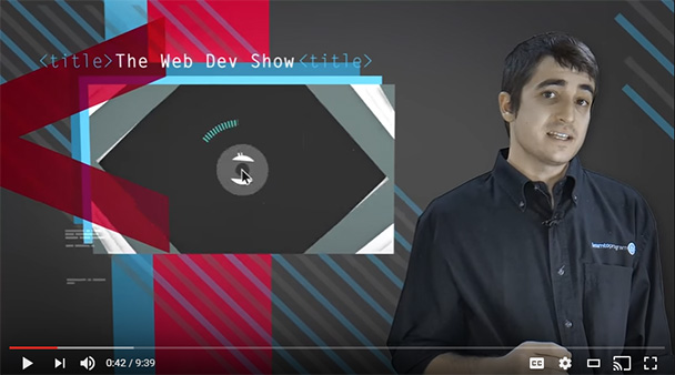 Figure 3: In LearnToProgram’s WebDev Show, on-camera host Andrew Snyder-Spak introduces a segmentaccompanied by several layers of motion graphics