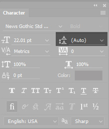 Figure 2: Photoshop groups typographicalcontrols on two palettes. I’ve highlighted the leading control here. Itcontrols the space between baselines.