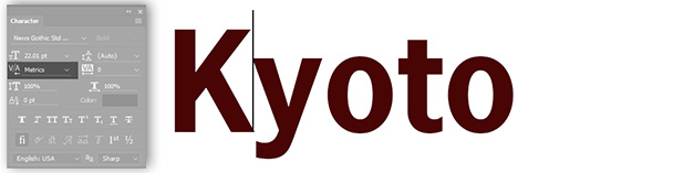 Figure 3: Adjusting the space betweenthe “K” and “y” using kerning in Photoshop