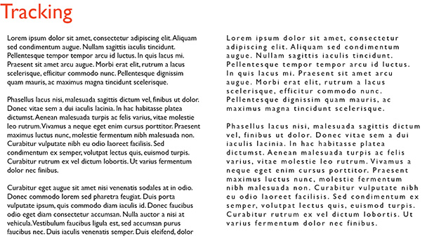 Figure 4: Normal tracking on the left and loose tracking on the right.You can see that the text becomes hard to read if tracking is too loose.