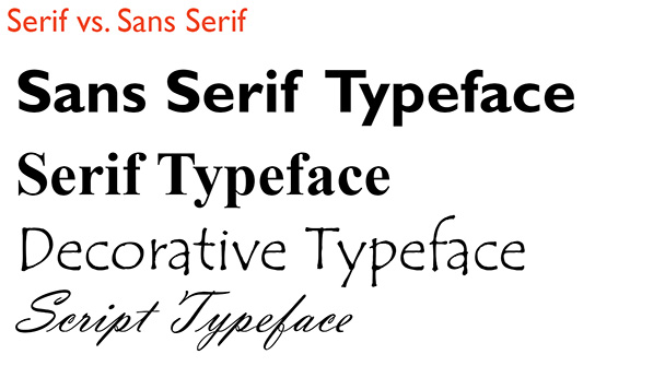 Figure 9: Sans serif, serif, and other popular categories of type