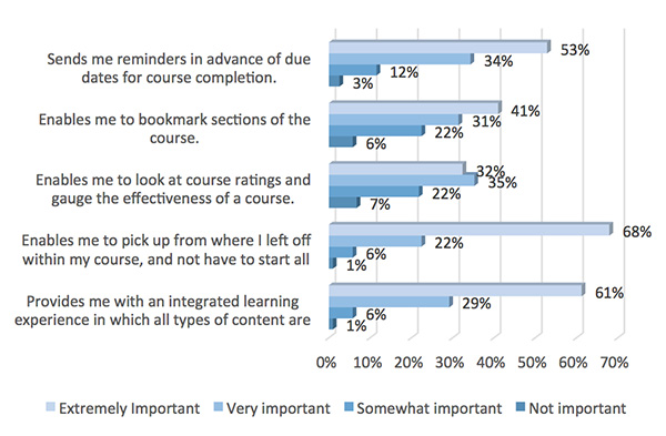 By substantial margins, Figure 5 identifies the threehighest-rated (“extremely important”) academic LMS features from the learner’spoint of view.