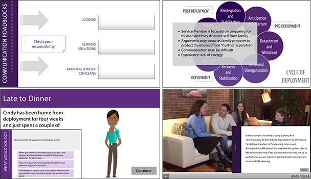 Learners, presented with a series of challenges orscenarios, are asked to apply strategies to navigate the scenario, and, basedon their response, are brought down various learning paths with the ultimategoal of selecting the best responses and accomplishing the mission. Soft-skillor process-oriented training provides an excellent opportunity to leverageimmersive scenarios.