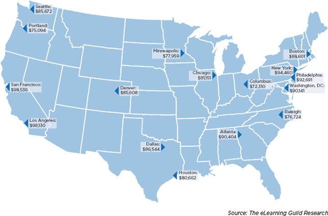 Figure 2:Average US eLearning base salaries by metropolitan area