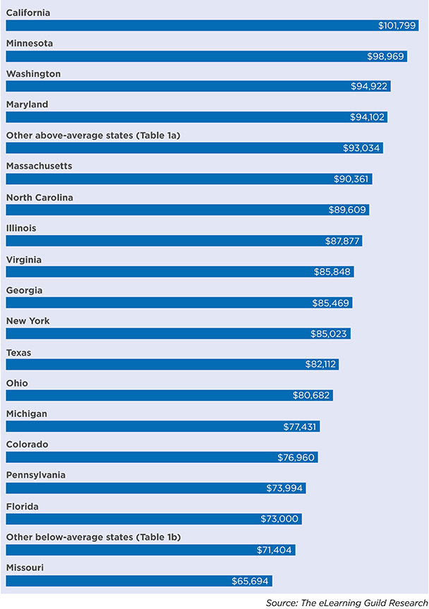 Use the US Salary Calculatorto compute and compare baseline eLearning salaries. The calculator has beenupdated with data from the 2017 eLearningSalary & Compensation Report. You can find the calculator on TheeLearning Guild’s Job Board.
