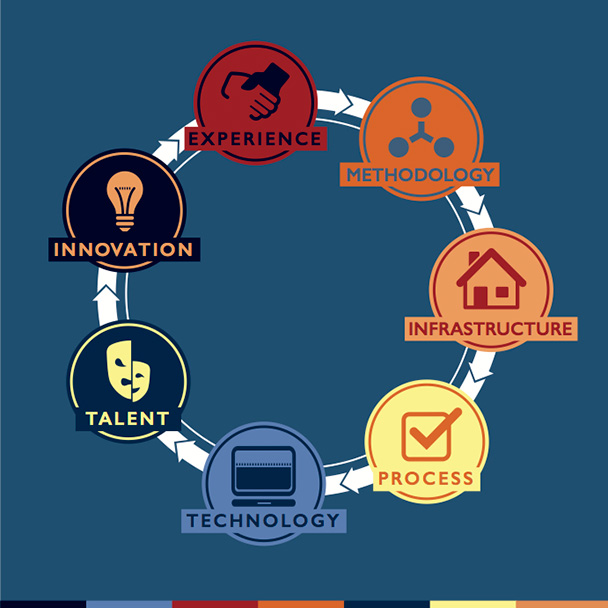 I took myobservations and constructed a framework that I call the seven attributes of highly effectivedevelopment vendors (Figure 1). These are the vendor’s attributesrequired to produce effective solutions and strong outsourcing relationships.These seven attributes compartmentalizethose characteristics that really make a difference. The attributes are,in order of importance: Experience, methodology, infrastructure, process,technology, talent, and innovation.