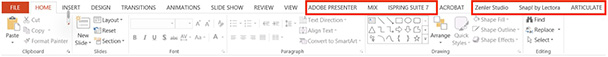 Figure 1: All of the PowerPoint add-in tools add themselves toPowerPoint’s ribbon (click to enlarge)