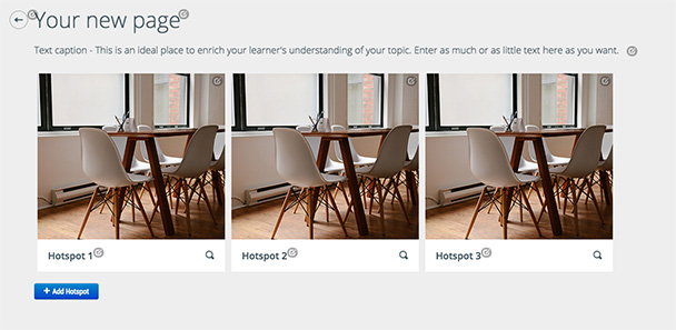 Add audio, images, and text to any page. You can customize every elementfurther. For instance, on my initial course splash screen, there is a Startbutton. I can change its destination from the default Next page and also changeits color or how it animates. InElucidat what an author sees is pretty close to what the learner sees (whichI’ll abbreviate to WYSIPCTWTLS, ha ha), making it intuitive to use.