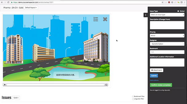 Some authoringtools build in review options so that you can invite quality assurance teammembers to perform thorough checks on your lesson and report back any problemsthey find, often in a way that you can see directly in the authoring tool.However, this is not always the case. Hence, a lot of organizations that createeLearning have invented their own review tools and systems in house. Havingworked with many of these types of systems, I can vouch for the fact that theycan be much more useful than getting an Excel spreadsheet listing of bugs.