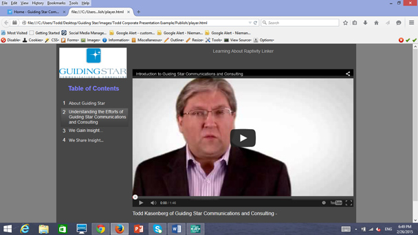 Figure 2: TheRaptivity Linker build of my rapidly developed corporate presentation, showingthe pull of my corporate video from YouTube