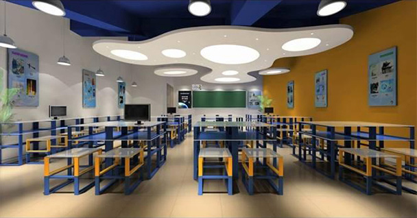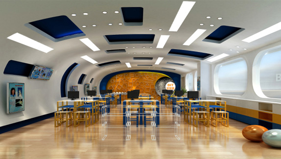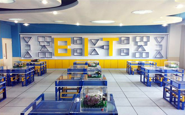 Dr. Cao took this new national interest as an opportunity toimplement his vision for BitLab. His purpose is to get students focusing oncreating a product using the three Ps—passion, product, and projects. He’s cultivating the youth mindset to utilizeinnovation, creativity, and teamwork by developing products that could better helpsociety and bring us into the future. These colorful spaces (Figures 2, 3, and4) are designed to foster effective problem-solving skills under the traditionallearning environment of a classroom. Dr. Cao worked with policymakers in Chinato approve and create classrooms that were fully DIY (do-it-yourself)—from thechairs and furnishings to the décor. Tables and chairs come in kits thatstudents are able to assemble. They are modular,easily pushed together to encourage teamwork. Table surfaces are transparent,allowing students to follow along with a textbook or their tablet computerunderneath the surface while they create and experiment with projects on top ofthe desks.