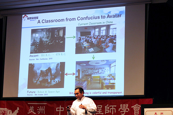 Figure 8: Dr. Weixun Cao explained the evolution of traditionalclassrooms to makerspace classrooms