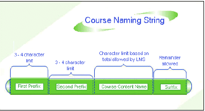 For example, those first few characters could represent a division, department, or bureau within your organization. Or these characters could represent a fiscal year or funding account number. Remember that this prefix is a critical course identifier that no course name can be without. The prefix should contain distinguishing information that you can use for sorting in reports you compile from the LMS.