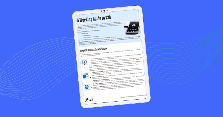 This eBook, A WorkingGuide to Voice Search Optimization, explores how VSO currently impacts theworkplace, and why voice search will become commonplace in eLearning.