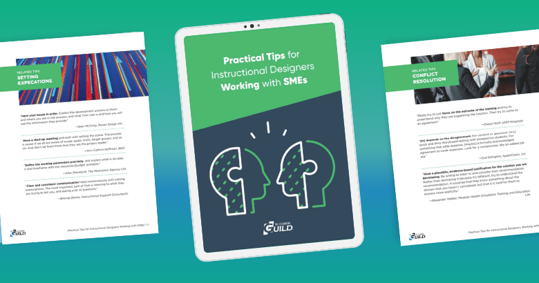 In this eBook, PracticalTips for Instructional Designers Working with SMEs, eLearning Guild membersoffer tips on navigating the ID and SME relationship. This eBook presentsoverarching themes, advice, and a few dozen tips.