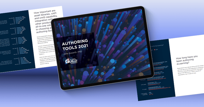 In AuthoringTools 2021, Jane Bozarth analyzes the 808 responses to share how the marketfor authoring tools has changed since 2013. This report includes information onwhich tools are used most frequently and how users feel about accessibility,ease of use, AR/VR, and other features that are growing in popularity.