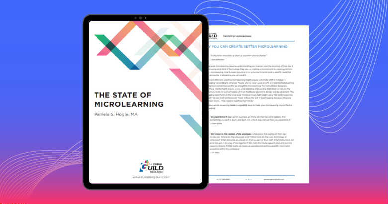 The State of Microlearning, by Pamela S. Hogle, surveys eight eLearning leaders aboutmicrolearning to assess what it is, understand where it is most successful, andanticipate what 2018 will bring. Included in the report is actionable advicefrom our experts that you can put to work immediately to create efficient andengaging microlearning.
